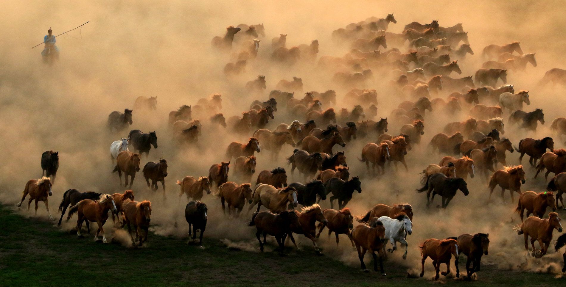 《百骏图》坝上的骏马奔驰在草原上,阳光下尘土飞扬,气象万千。该作品刊登于中国摄影报。