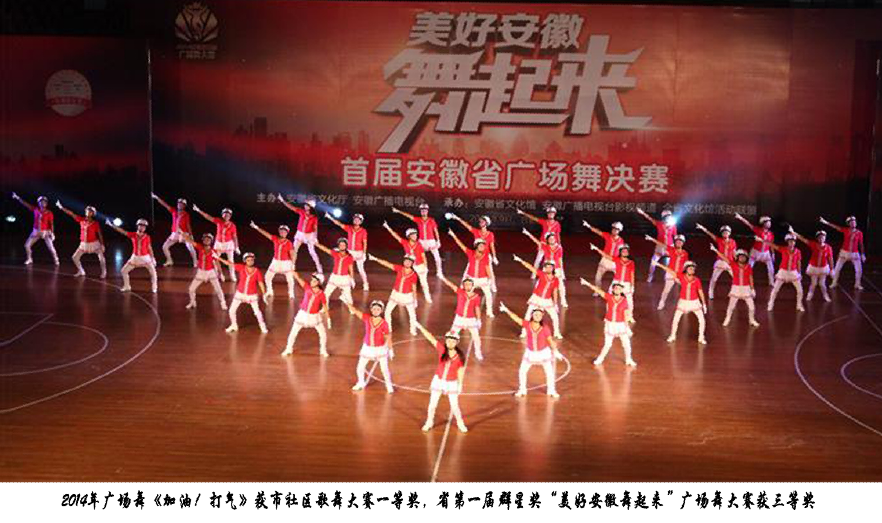 广场舞《加油!打气》获市社区歌舞大赛一等奖,省第一届群星奖“美好安徽舞起来”广场舞大赛获三等奖