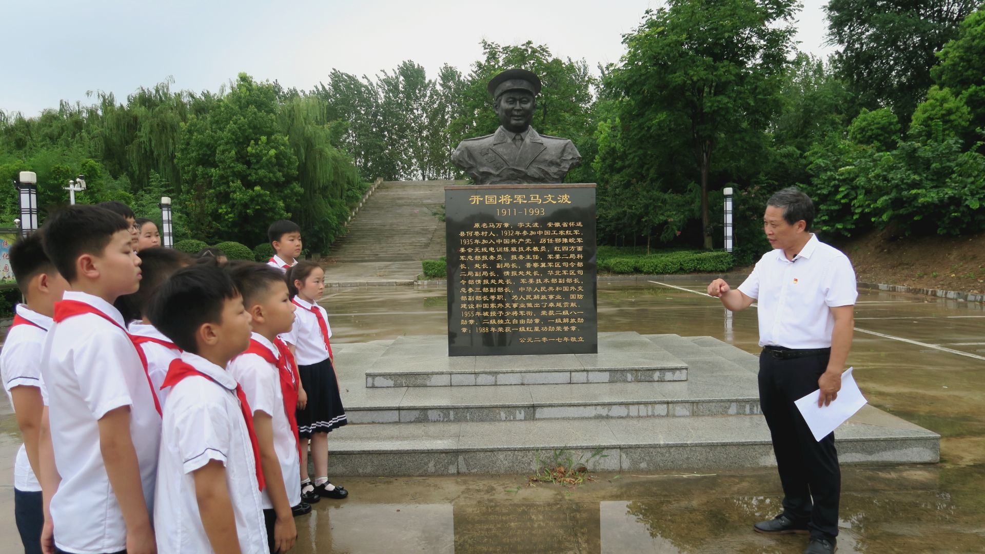 榴城镇在党史学习教育中,采用多种方法进行党史宣讲,组织老党员讲过去的故事、市县优秀党员代表讲心得体会、老红军及参战老兵讲革命战争史等方式,使党史学习教育有声有色,大大增强了党史学习教育的吸引力、感染力、影响力,引导党员干部从百年党史中感悟思想伟力,汲取前行力量。图为对越自卫反击战参战老兵王青勇在开国将军马文波雕像前向少先队员讲述当年的英雄故事,教育引导大家铭记历史、珍惜眼前的幸福生活。 吴军 摄