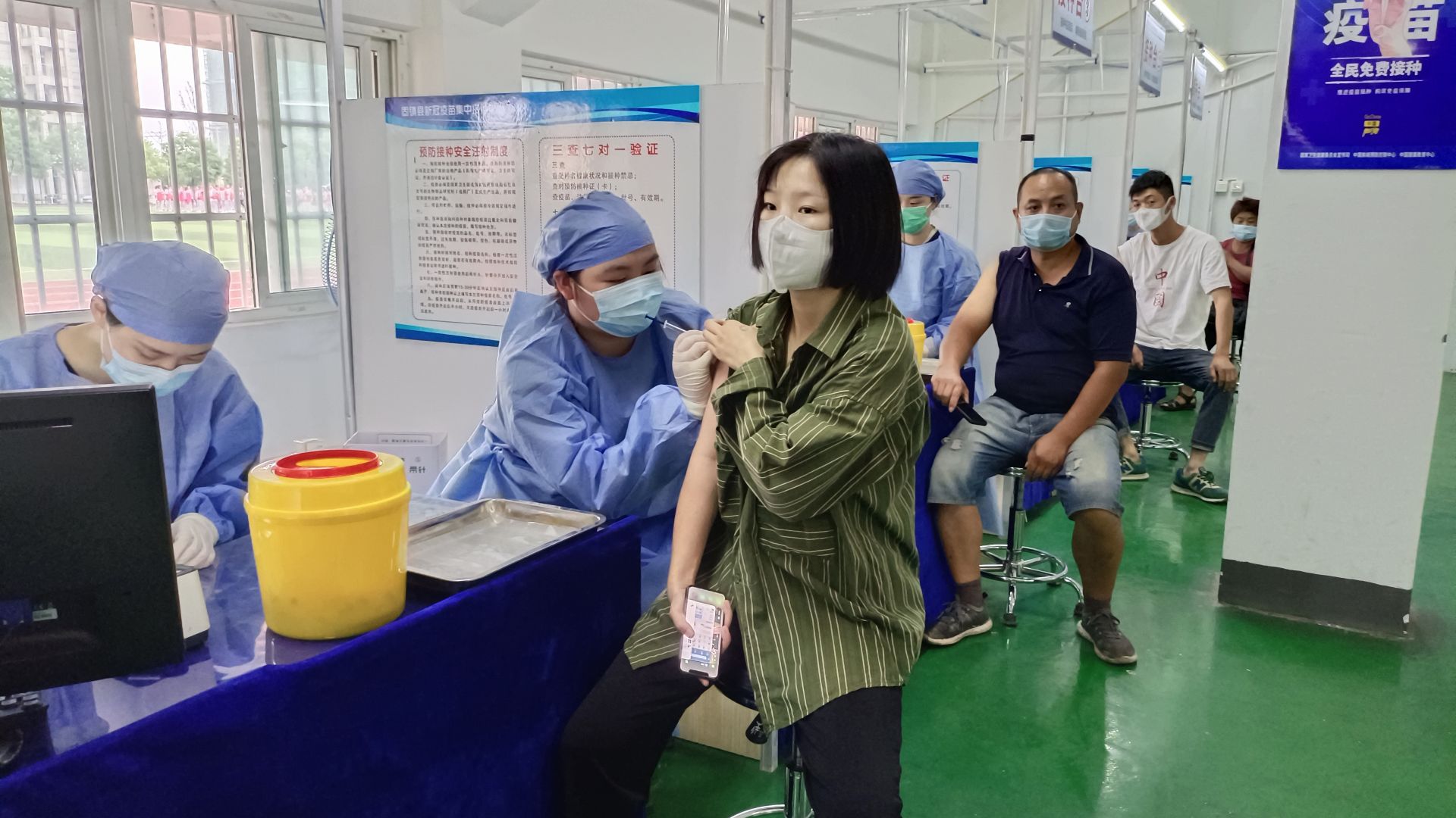 固镇县新冠疫苗集中接种中心内,广大居民有序接种新冠疫苗。庞贵军 摄