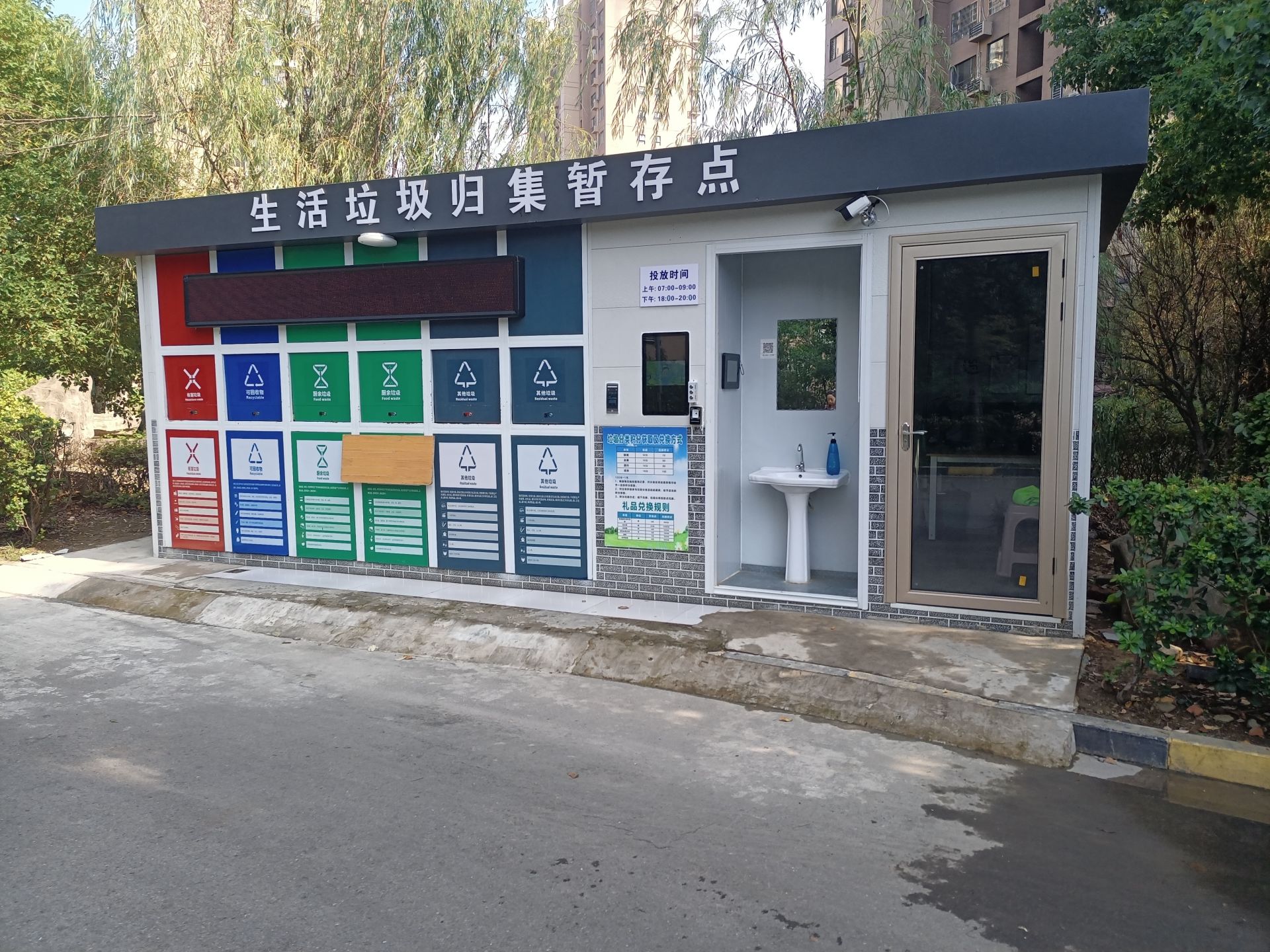 昨天下午,在阿尔卡迪亚·碧水湾小区西门广场,淮河晨刊记者看到了这个智能的“铁皮柜”。其实整个垃圾分类投放区域,除了铁皮柜,还有与之连体的洗手池,以及工作人员的办公区。记者看到,这个“生活垃圾归集暂存点”将垃圾分类为“可回收物、有害垃圾、厨余垃圾、其他垃圾”四类进行投放,禁止混投。第三方公司的工作人员对垃圾分类进行宣传、指导和监督。