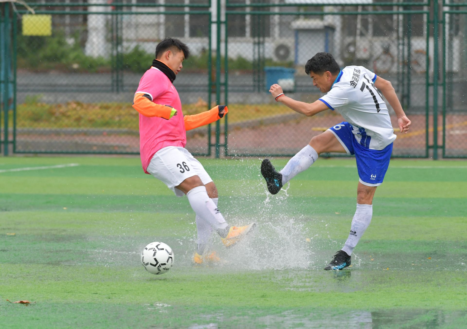 11月7日,立冬,气温骤降,最低气温逼近零摄氏度。当天上午,蚌埠市老体育场内,身着短袖、短裤球衣的业余球员顶着寒风冒着冷雨,虽然衣衫湿透,但热情不减,在绿茵场上奋力拼抢。