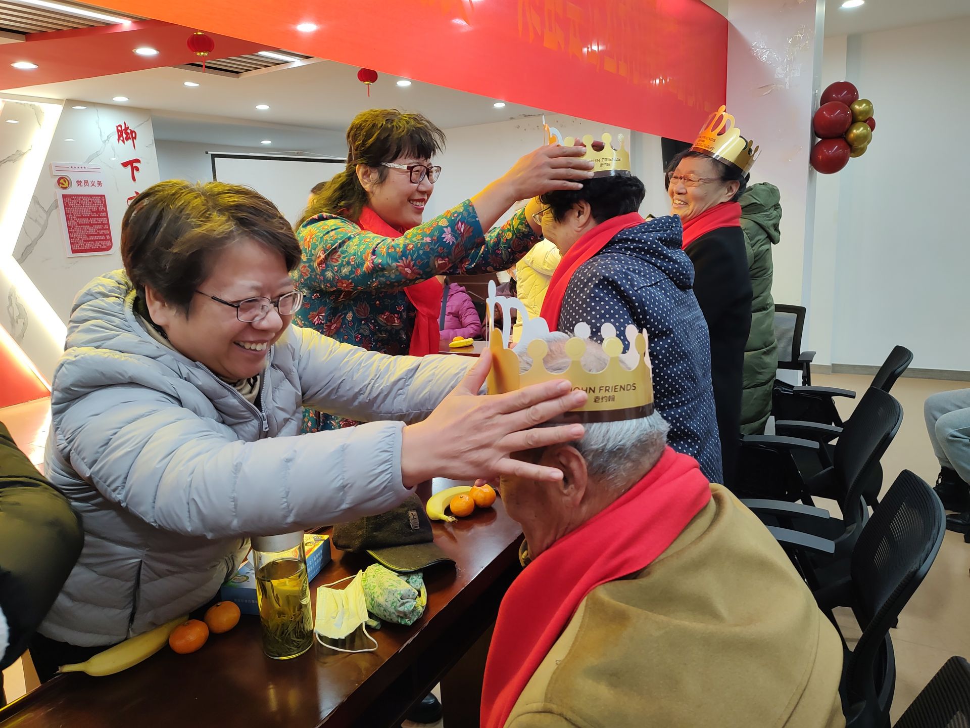伴随着“祝你生日快乐……”的旋律,志愿者们为在座的老人戴上了漂亮的生日帽,一位最年长的老人激动地表达了自己内心的感动。老人们互相祝福生日快乐,大家祝福老人们健康长寿。趁着老人在分享蛋糕,志愿者们又为老人端上了一碗碗热气腾腾的长寿面。