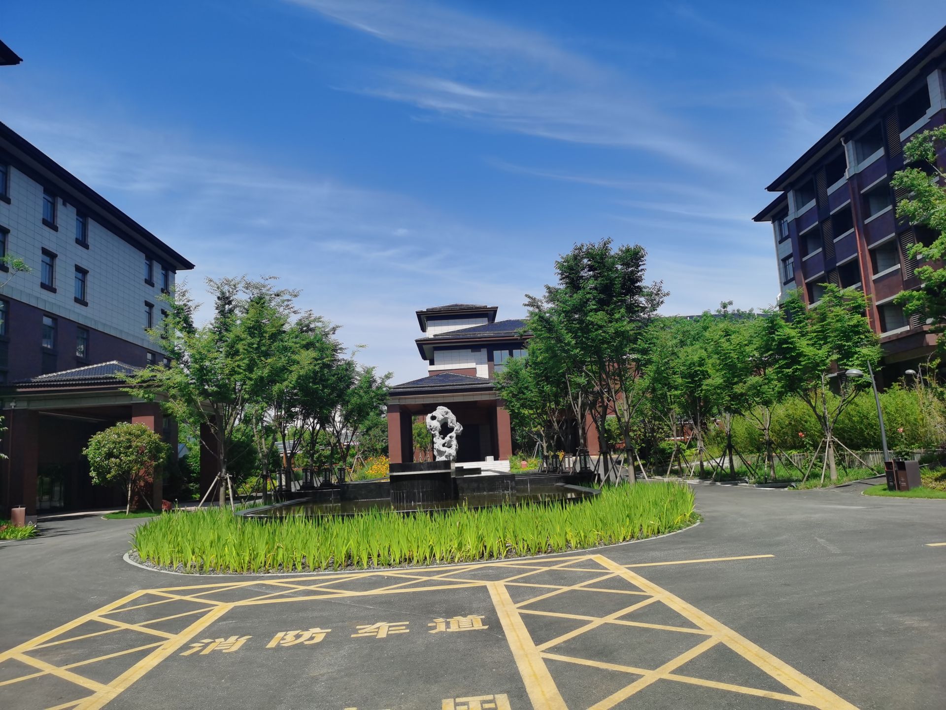 老年公寓位于涂山风景区脚下,建筑掩映在绿色之中。