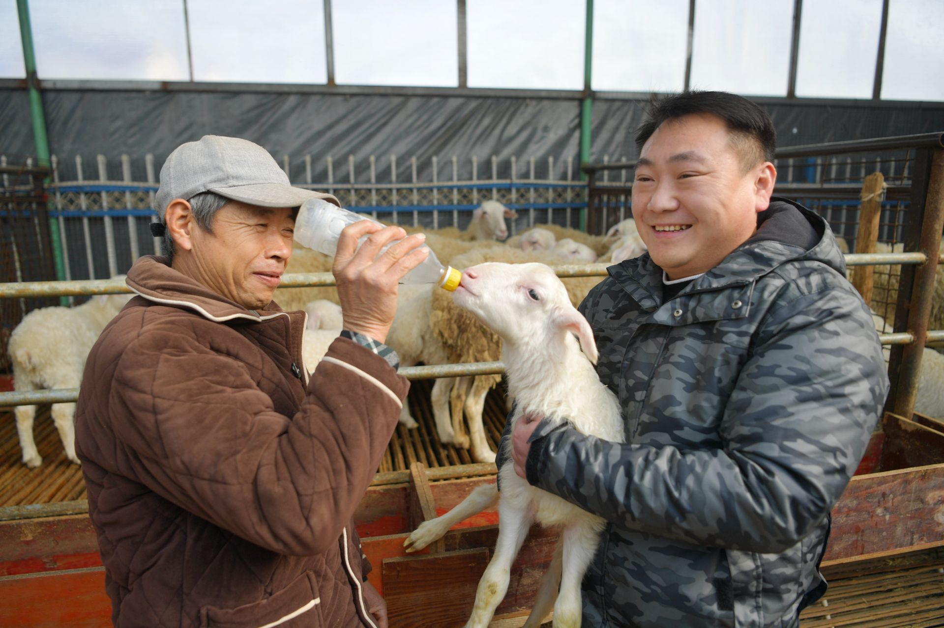 1月18日,怀远县淝南镇徐湾村党支部第一书记、乡村振兴工作队长李晶(右),看到农户家又添了小羊羔,十分开心。