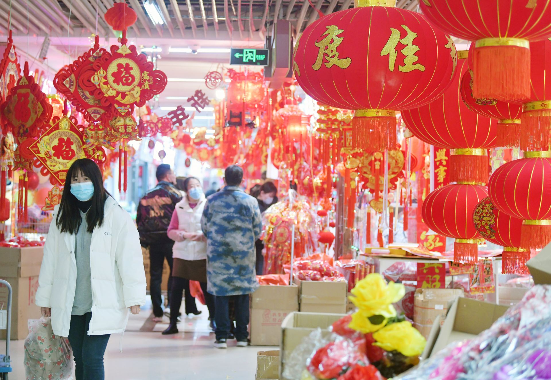 1月26日,中恒(蚌埠)义乌商贸城,市民逛街挑选节日所需商品。 融媒体记者 刘 晨 摄