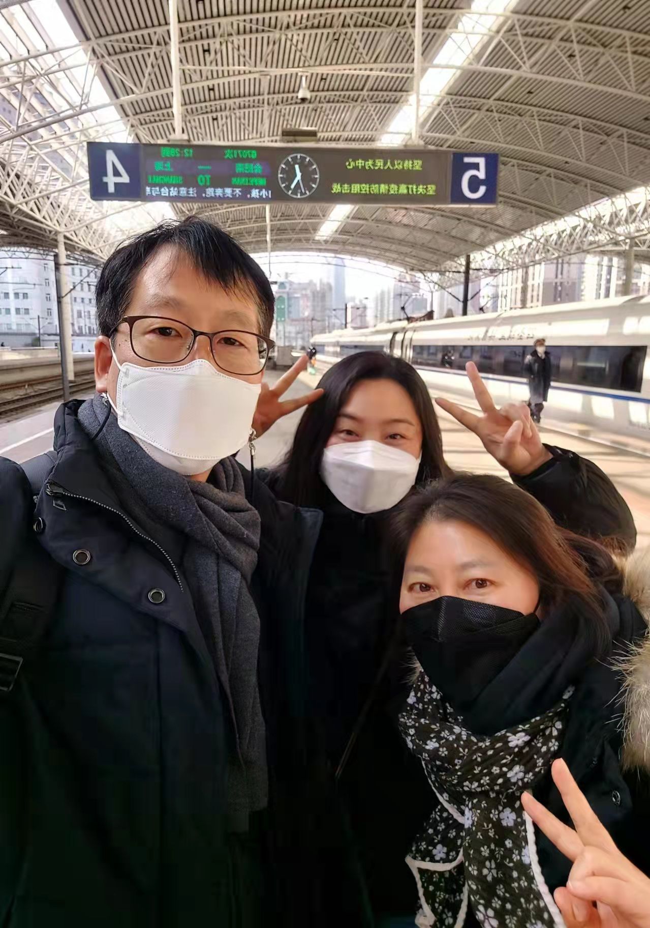 朴希镇(中)与同事在中国自拍,两名同事也是韩国外教哦。受访者供图
