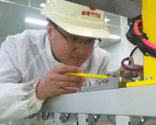 “新冠肺炎疫情暴发时,我刚刚入职不久,对整条生产线的情况还在摸索、熟悉,暂时还不能参与排班,所以2020年除夕我回去了,到家之后发现疫情形势变化非常快,我怕万一封城无法回岗,所以年初二就离家赶回了蚌埠。果然,初三那天我们村就封了路。”回忆起在中光电的第一个春节,叶李军记忆犹新。回蚌后他封闭工作了两个月,很快适应了工作环境和设备。