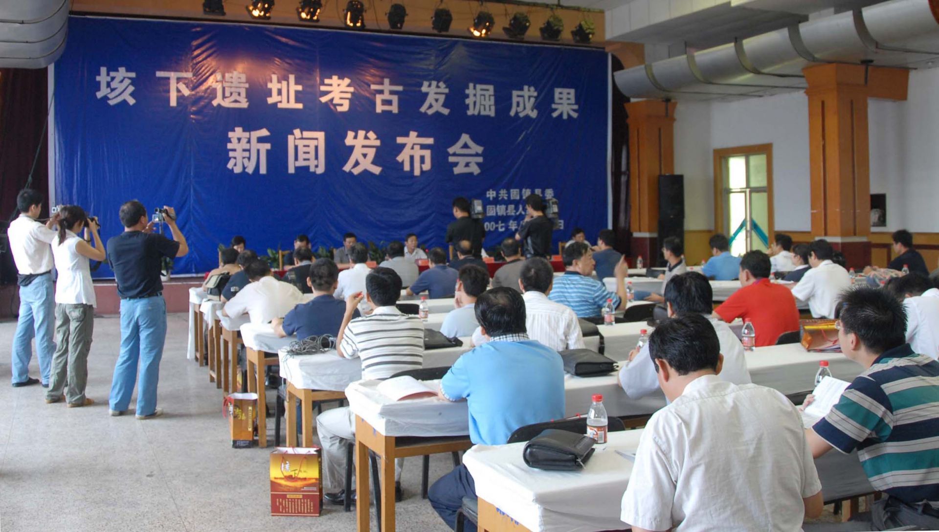 2007年8月18日固镇县召开垓下遗址考古发掘成果新闻发布会(资料照片)