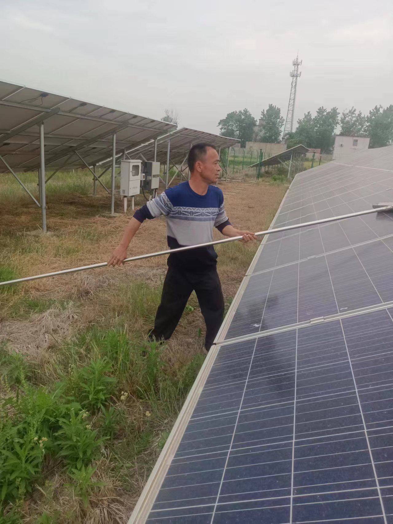 作为三巷村光伏扶贫电站的管护员,王文理的工作内容包括电表抄送、光伏电池板清理、电池板下方卫生清理、日常巡视等,如果发现光伏电池板出现损坏要及时上报,以便及时维修,保障光伏扶贫电站的正常运转。王文理说,这些工作一个小时左右就能全部处理完,不会耽误田间农活。