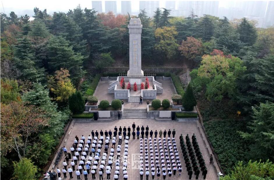 全体人员依次走向革命烈士纪念碑,绕纪念碑一周,向革命烈士致以深深的敬意。