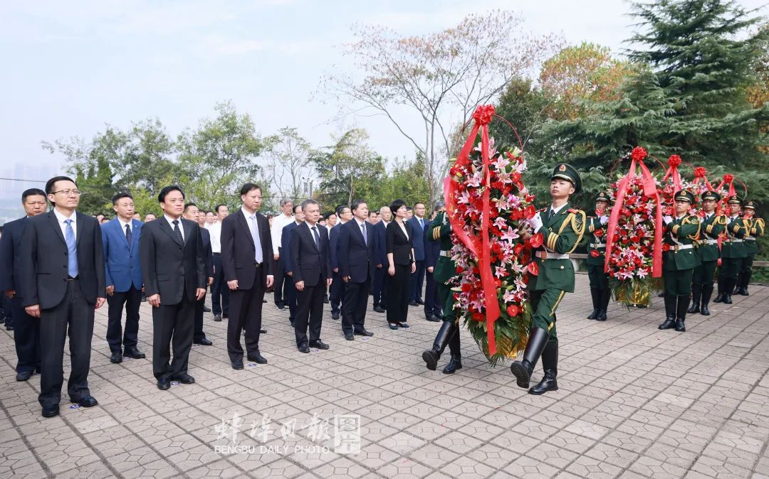 市委副书记、市长操龙灿主持仪式。市委、市人大、市政府、市政协、蚌埠军分区负责同志;市直各有关单位主要负责同志;各区党委政府主要负责同志;解放军和武警官兵代表;市法院、市检察院代表;烈属代表、退役军人代表、学校师生代表等参加。