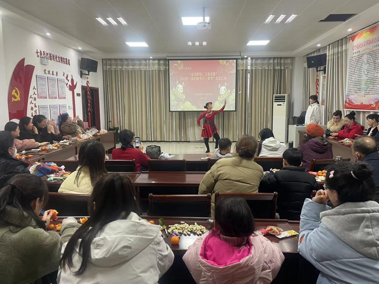 为推进社区精神文明建设,践行党建引领社区发展治理精神,营造文明和谐、奋发向上的文化氛围,1月13日下午,在2023年农历春节来临之际,高新区文竹苑社区在社区文明实践站内开展“我们的节日·春节”文艺汇演。