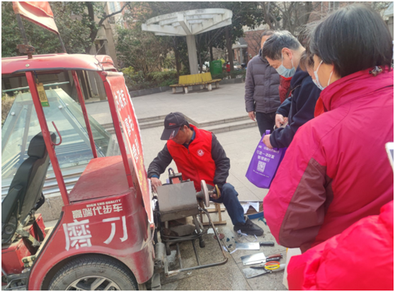 沁雅社区联合共建单位中国银行、“我们·长友理”公益联盟、社区卫生服务站、百大宝龙店、蚌埠市营养与食品安全学会等,现场设置服务台,提供暖心义诊、爱心义剪、免费磨刀、食品安全宣传等便民服务。