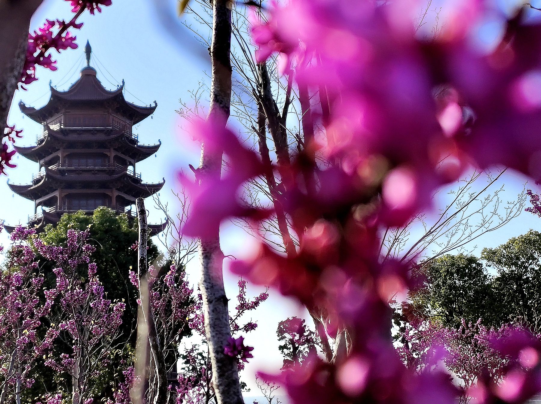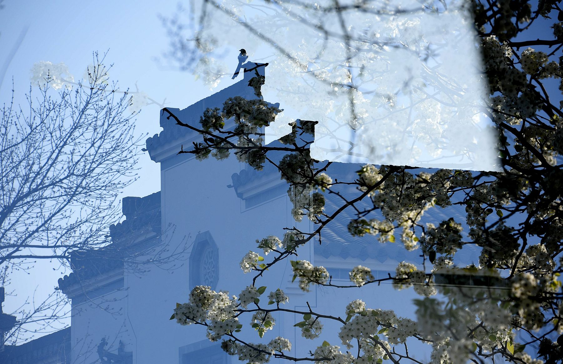 走进粉墙黛瓦的蚌埠市湖上升明月古民居博览园,杨柳吐绿,鸟语花香,亭台楼阁交相辉映,构成一幅幅美丽的春天画卷,无论是驻足休闲或是漫步赏花,都让人心生美好,幸福快乐。(沈林成 摄)