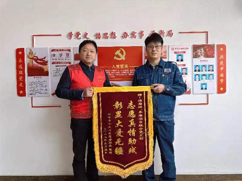 心连心志愿者协会会长张红卫就联合党支部在协会3月3日组织的“学雷锋,践行动,助残扶弱进家入户”公益活动中给予的人力和资金的支持表示感谢,并代表协会向联合党支部赠送了锦旗。