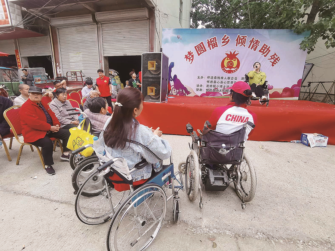 近日,怀远县残联、怀远县心连心慈善协会等单位在淝南镇举办“梦圆榴乡 倾情助残”公益义演活动,几名重度残障人士倾情演唱,充分展现挑战命运、自强自立的精神,感动了现场观众。