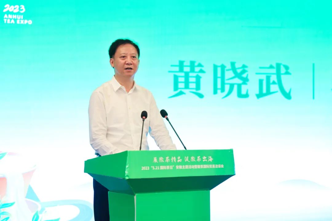 黄晓武在致辞中向活动的举行表示热烈祝贺,向长期以来关心支持蚌埠发展的各界人士表示衷心感谢。他说,蚌埠历史文化深厚,科教资源丰富,产业基础良好,开放平台优越,景色优美宜人,区位交通便利。作为安徽茶企出海的重要通道,蚌埠将充分发挥东西贯通、南北通衢的区位优势,提供更加便捷顺畅的交通物流保障,努力填补皖北“缺茶”空白,助力赋能安徽茶产业提质增效、全面振兴,让更多人了解徽茶、喝上徽茶、爱上徽茶;将充分发挥安徽自贸试验区蚌埠片区优势,在产业发展、外汇金融、贸易投资、营商环境等重点领域开展自主创新,为广大茶企走出国门、走向世界提供有力支持;将充分发挥国家市场采购贸易方式试点平台优势,搭建共建共享的进出口通道,提供优质便利的展销平台,积极对接徽茶入驻,为广大茶企开辟国际市场、拓展国际贸易、打造知名品牌增添助力。衷心希望大家一如既往关心蚌埠、支持蚌埠,为蚌埠高质量跨越式发展提供更多的指导和帮助。热切期待广大企业家朋友多到蚌埠旅游考察、投资兴业,深化拓展合作领域,共谱合作共赢新篇。