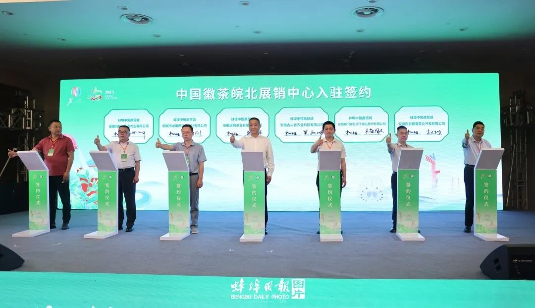 会上,蚌埠中恒商贸城与省内六大产茶市茶企代表签约,安徽省茶业集团与蚌埠市供销社社属茶企签约。会议还进行了蚌埠中恒商贸城市场采购贸易方式试点推介,部分专家和企业家代表在会上作主旨演讲。