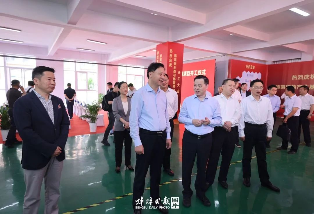 蚌埠发布客户端讯 (融媒体记者:顾楷 文 陈昂 图)5月31日上午,蚌埠市肠道微生态与肠菌移植产业基地项目开工仪式举行。市委书记黄晓武出席并宣布项目开工。上海市第十人民医院院长秦环龙,市领导马天奇、郭家满出席开工仪式。
