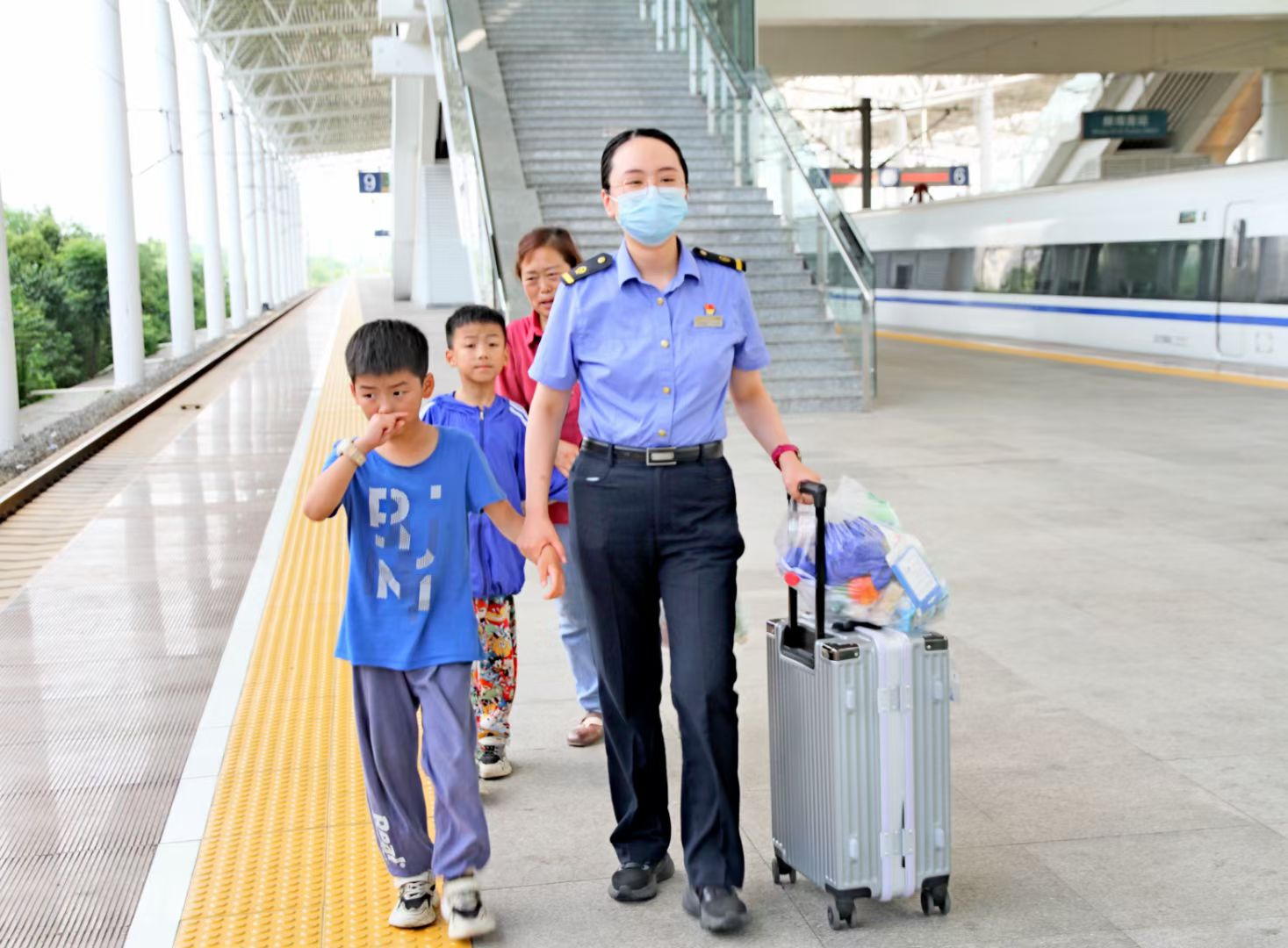 15点50分,丁玉洁带着老人、两个男童通过无障碍绿色通道到达站台。其间,丁玉洁联系管内宿州东站工作人员做好接续服务。“这是我第一次一个人带俩娃乘坐高铁,你们细心周到的服务打消了我所有的顾虑,为你们的服务点赞。”老人激动地竖起了大拇指。