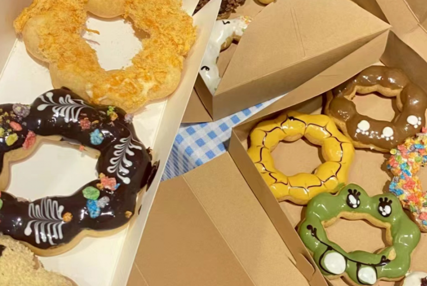 香软的面包圈,浇上甜蜜的巧克力,然后撒上脆脆的糖粒,不要急!最后等甜点师傅用巧克力糖浆画上花纹吧,这样的美味值得等待。新鲜出炉的甜甜圈散发着奶香和麦香,一口咬下去,面包在唇齿间融化,巧克力热情地在舌尖流淌。