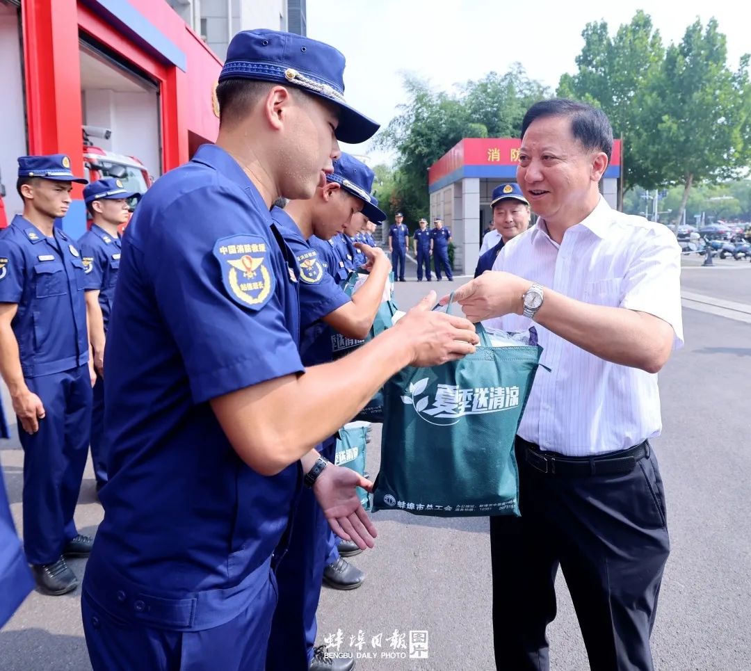 在市消防救援支队,黄晓武看望慰问高温下坚持训练备勤的消防救援指战员。他说,全市消防救援指战员在各类防火、救援、应急处突工作中勇于当先锋、打头阵、挑重担,用实际行动维护了社会大局和谐稳定。希望大家继续发扬光荣传统和优良作风,不断提升应急救援能力,奋力锻造全面过硬的新时代消防救援铁军,为推动蚌埠经济社会高质量发展、守护人民群众生命财产安全贡献更大力量。