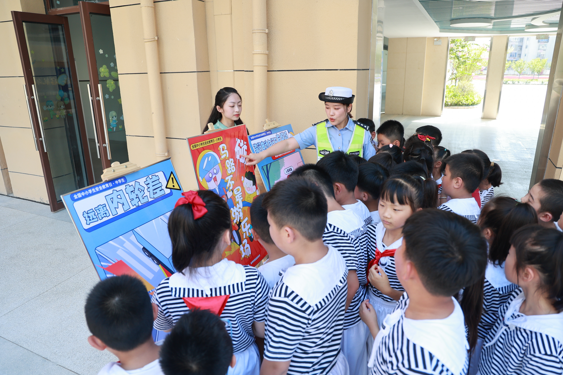 新学期,新起点。9月1日,蚌埠第二实验学校教育集团兰凤路学校首批少先队员们身着整洁的校服手持欢迎牌迎接新生的到来。伴随着庄严的国歌声,全校师生凝望着鲜艳的五星红旗缓缓升起,开学典礼正式开始了。校长王莎莉发表了情深意切的讲话,既有对一年级新生们的美好祝愿,也有对二年级学生们的殷切期盼。蚌埠市交警第七大队民警为孩子们送上“开学第一课——交通安全”。少先队员们开展了“开学第一课——学生态、促生态、护生态”主题班会活动,彼此间分享暑假期间了解的有关如何进行垃圾分类的知识,并将自己精心制作了垃圾分类宣传牌装点在校园的花坛里。