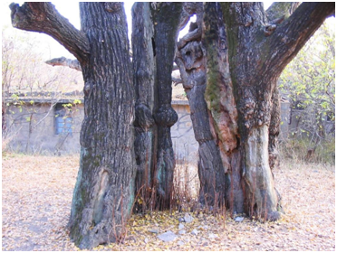 从小涂山沿古道石阶东上峰顶,即可见禹王宫。唐《名胜志》记,汉高祖过涂山,命立启王庙,以镇荆山;立禹王庙,以镇涂山。元大德年《重修禹王庙记》,言唐以前已有禹庙。看到启母殿前的古银杏遭雷击焚毁后又长出新枝,苏辙不禁感叹“山外青山都如画,树中生树不知年”。