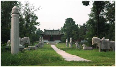 从长淮卫可望曹山夕照,东瓯王汤和墓就在曹山南坡。夕阳下,汤和墓的神道、享堂、墓圹,也是曹山一景。