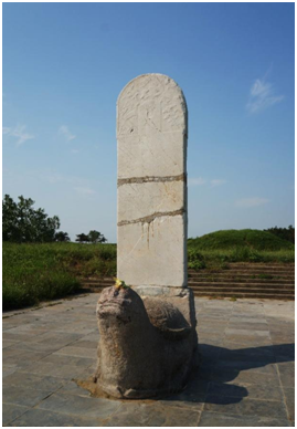 化明塘严氏墓前的汉白玉墓碑。2012年摄
