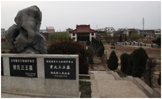 怀远常坟的“三王坟”,是明代开平王常遇春之曾祖、祖父、父三代的墓葬,在今“遇春园”内。常遇春是明代开国元勋,怀远永平乡人。跟随朱元璋起事,立下很多战功,尤其是采石矶之战,担任先锋将军的常遇春一马当先,奋勇向前,大破元兵。扫平陈友谅、张士诚后,又参加北伐战役。在北伐回师途中病亡。常遇春初封为鄂国公,死后追封开平王,朱元璋为其举行隆重葬礼,葬于南京明孝陵。不久,承龙恩浩荡润泽祖先,朱元璋又追封常遇春上三代均为开平王。