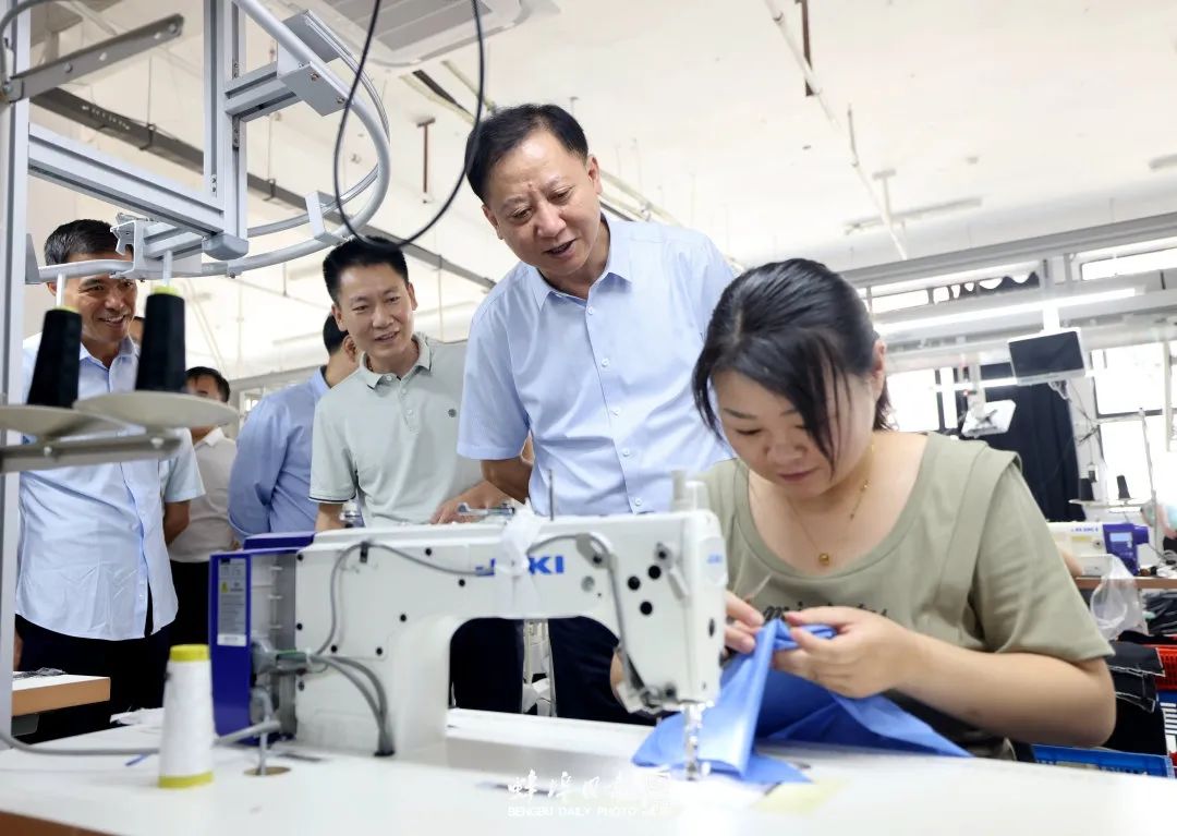 安徽百荣服装科技有限公司是去年从宁波招引入园的企业。黄晓武走进企业生产车间和展厅,与企业负责人、一线工人面对面交谈,仔细询问企业生产经营、招工用工等情况,得知企业来到园区后实现较快发展、各类要素得到有力保障,黄晓武鼓励企业扎根园区,进一步加强与我市上下游企业合作,共同开发新产品,携手开拓新市场,努力实现做大做强目标。