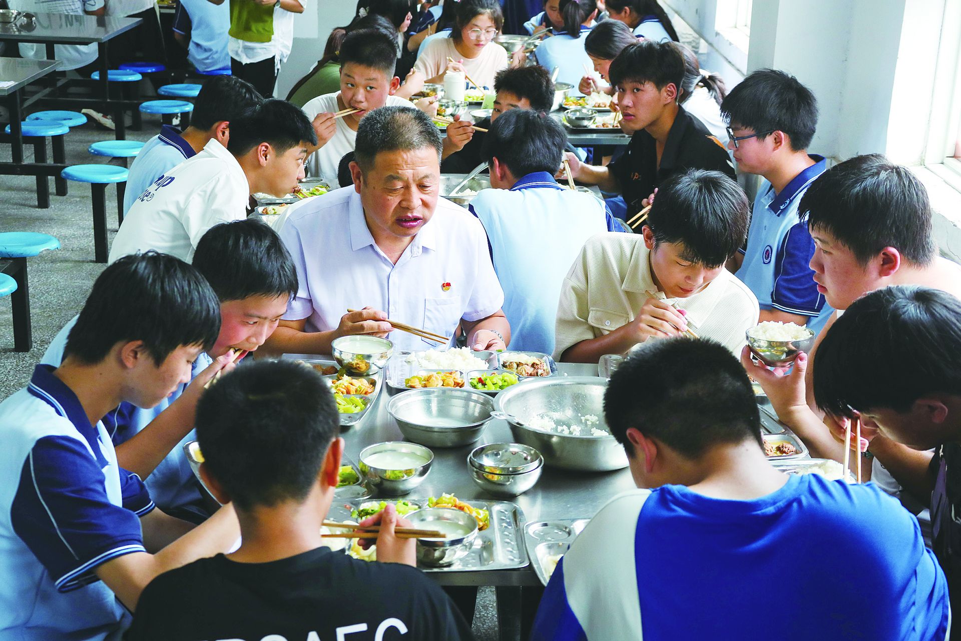 9月5日,夏玉桥利用午餐时间与学生谈心。