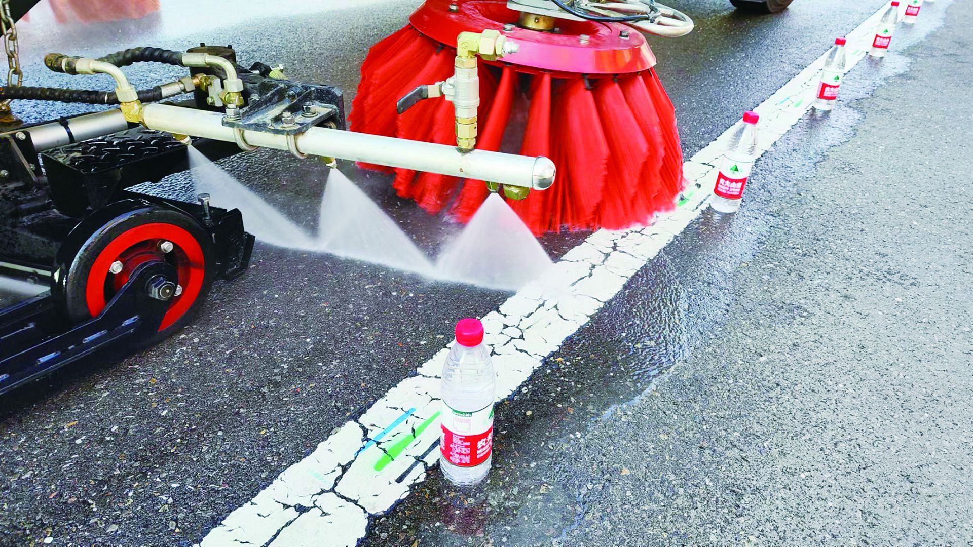 道路机械化清扫技能竞赛中,尽可能贴近边线又不碰到水瓶,才能得高分。