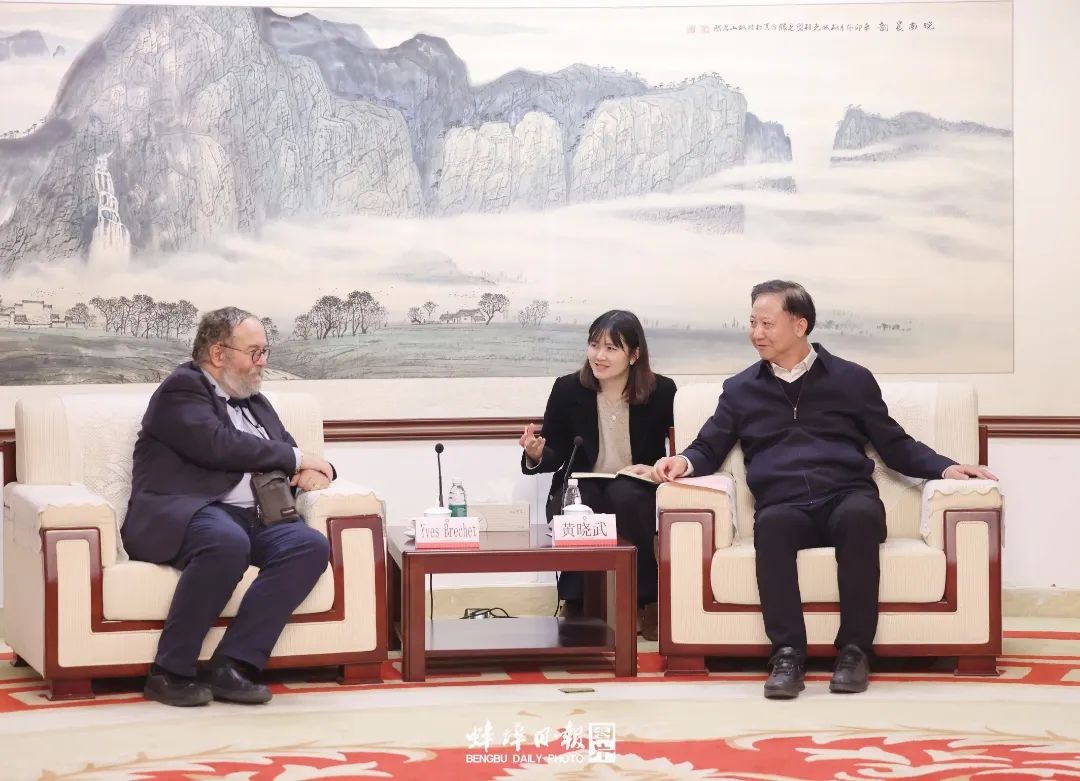 黄晓武对伊维斯·布莱彻特一行来蚌表示欢迎。他指出,蚌埠文化底蕴深厚、创新动能强劲、产业基础良好,是一座适合创新创业的城市。当前,我们正坚持创新驱动、招商带动“两动并进”,持续推进高水平对外开放,加快建设包括“中国玻璃谷”在内的“两谷两园”,不断发展壮大六大新兴主导产业和五大产业集群。圣戈班与蚌埠合作基础良好,希望双方发挥各自优势,利用好“中国玻璃谷”平台,进一步加强科技交流合作,推动在新能源汽车玻璃等更广领域有更多产业项目落地,共同推动可持续发展。我们将持续优化营商环境,加强与海内外企业的全方位合作,实现互利共赢。