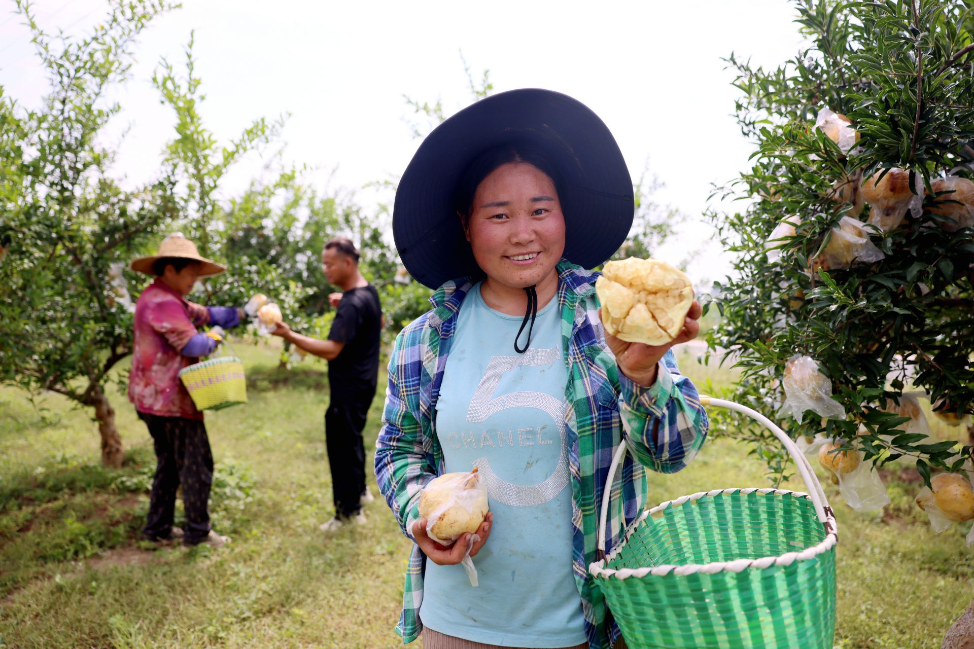 农户在石榴种植基地采摘成熟果实。融媒体记者 刘晨 摄