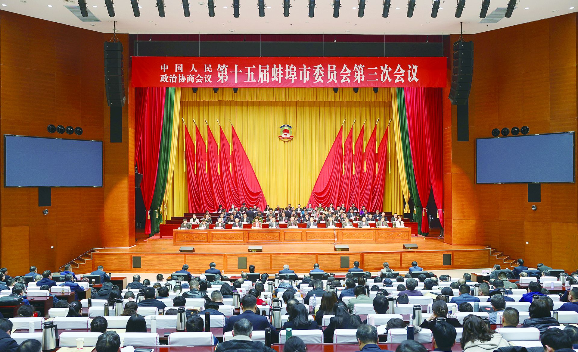 1月18日下午,中国人民政治协商会议第十五届蚌埠市委员会第三次会议圆满完成各项议程,在市委党校礼堂胜利闭幕。 融媒体记者 刘晨 摄