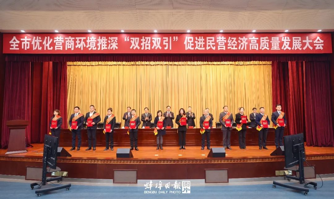 黄晓武代表市委、市政府向受到通报表扬的优秀企业和受表彰的先进集体、先进个人表示热烈祝贺,向广大民营企业和民营企业家长期以来对蚌埠发展作出的重要贡献表示衷心感谢。他在讲话中指出,当前,蚌埠正处在厚积薄发、动能蓄积、大有可为、加速崛起的上升期、关键期。加快打造“三地一区”两中心、建设“七个强市”和现代化幸福蚌埠,就要持续地坚决地把优化营商环境放在更加突出的位置,以优质营商环境的“梧桐树”,来招引优质企业、优秀人才的“金凤凰”,从而让民营经济这片“大森林”更加枝繁叶茂、百花齐放。