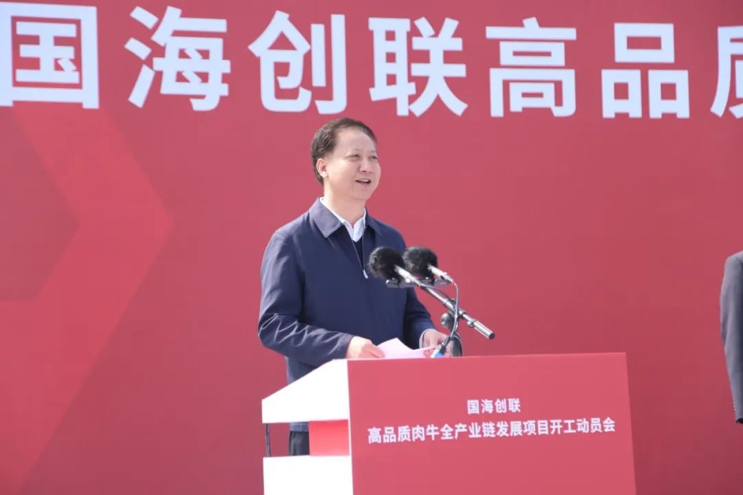 蚌埠发布客户端讯(记者:李扬 陈昂 文 图)3月11日上午,国海创联高品质肉牛全产业链发展项目开工动员会在怀远县举行。副省长张曙光宣布项目开工,市委书记黄晓武致辞,省政府副秘书长金宗顺,省农业农村厅厅长汪学军,省农垦集团总经理张其广,省农业农村厅副厅长汤洋,国海创联实业集团有限公司董事长闫涛,国家肉牛牦牛产业技术体系首席科学家曹兵海,市领导王庆武、吴永彬、乔树伟,淮北市、亳州市、宿州市、阜阳市、淮南市、滁州市、六安市政府分管负责同志出席。