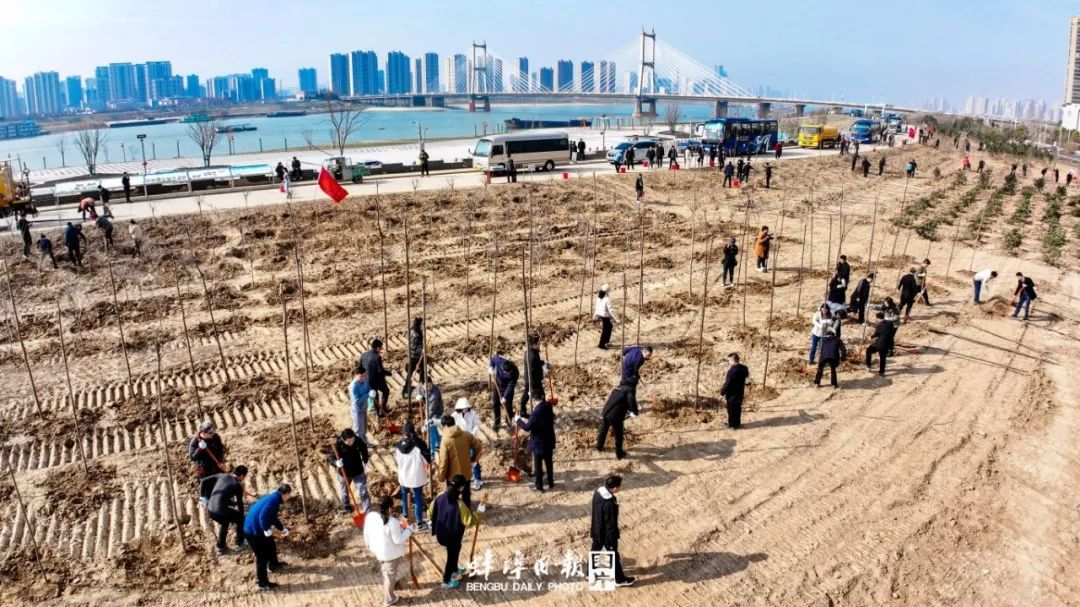 3月的蚌埠春光明媚,淮河两岸处处是万物萌发、生机盎然的景象。一到植树现场,黄晓武、马军就拿起铁锹投入到劳动中。大家两三人一组,挥锹铲土、培土围堰、提水浇灌,细致完成每一道工序,淮河岸边一派热火朝天的劳动场景。经过一个小时的紧张劳动,1800余株桂花、蜡梅、楸树等树木迎风挺立,“靓淮河”又增添了一道美丽风景。