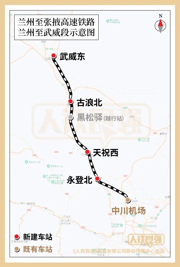 线路全长约194.3公里,设计时速250公里,新建永登北、天祝西、黑松驿(越行站)、古浪北、武威东5座车站。