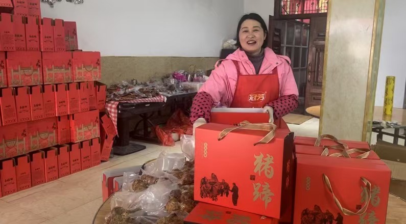 在这里,有一句俗语——来长淮,一定要吃猪蹄。长淮村党支部书记汪全文笑着说,无猪蹄,不成宴!过年了,猪蹄是家家户户餐桌上的必备菜。“没吃猪蹄,等于没来长淮。”