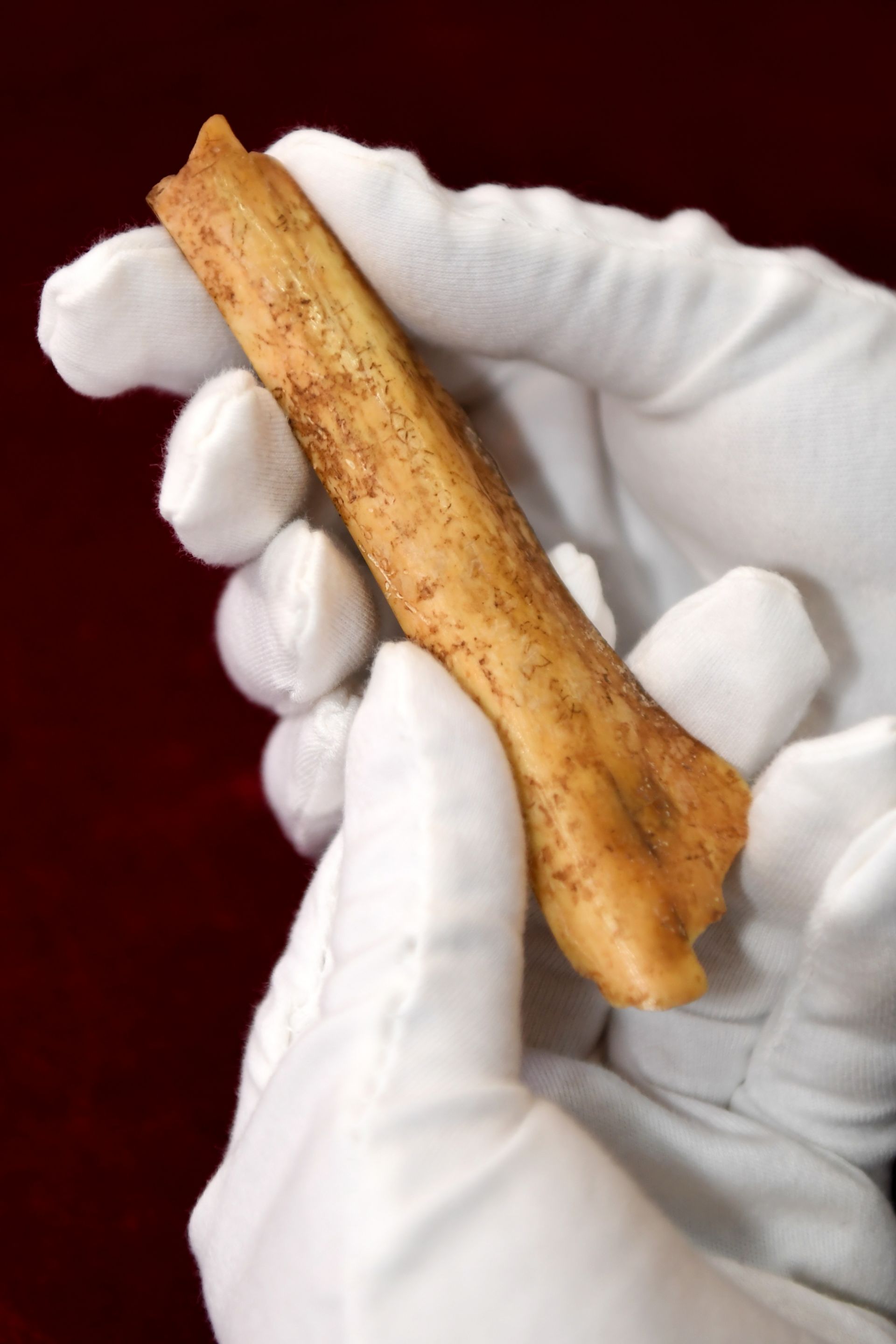 这是2025年2月25日拍摄的周原遗址出土刻辞卜骨。新华社记者 李一博 摄