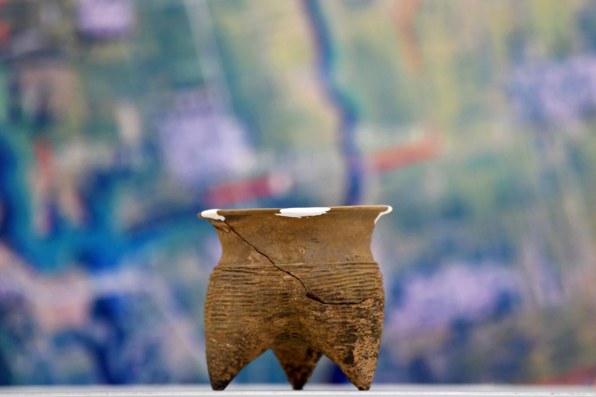 这是2025年2月25日拍摄的周原遗址出土陶鬲。新华社记者 李一博 摄