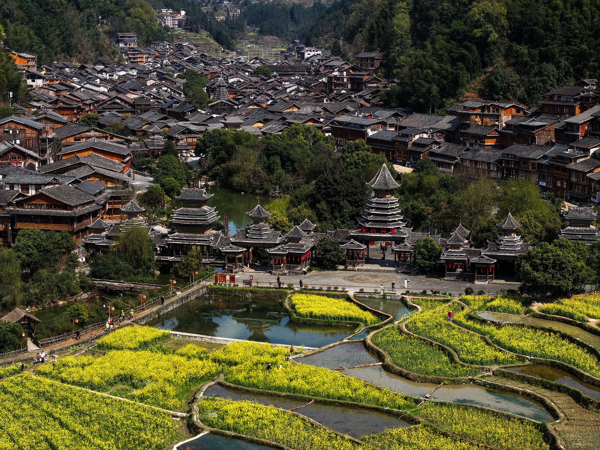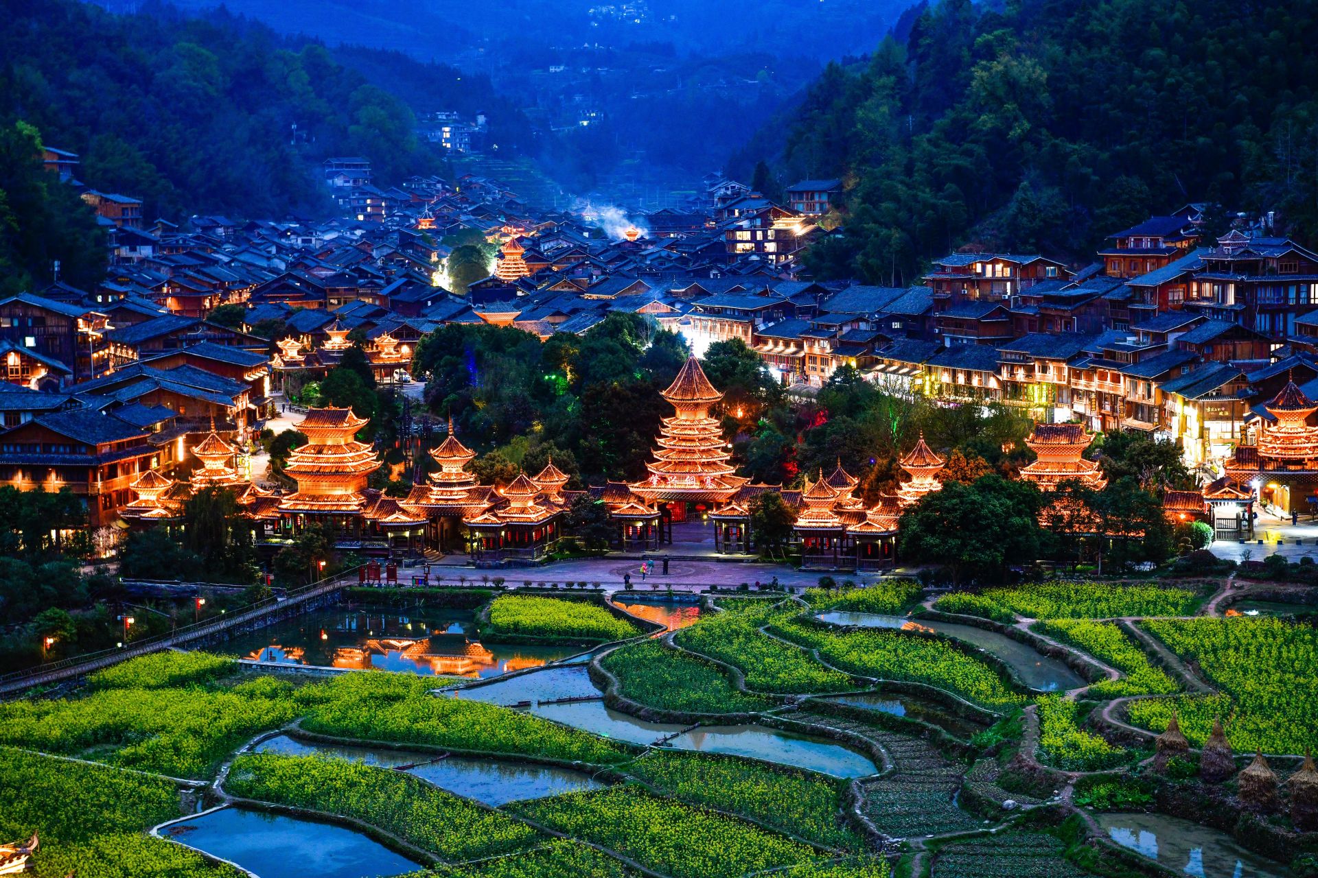 位于贵州省黔东南苗族侗族自治州黎平县的肇兴侗寨有侗族居民逾千户。这里的侗族传统建筑风貌保存完好、民族文化源远流长。