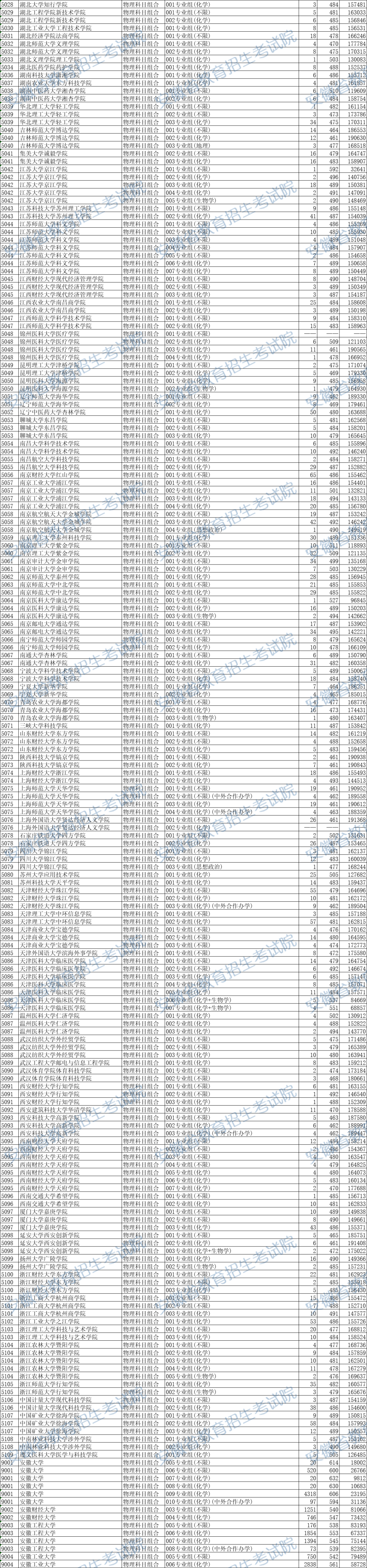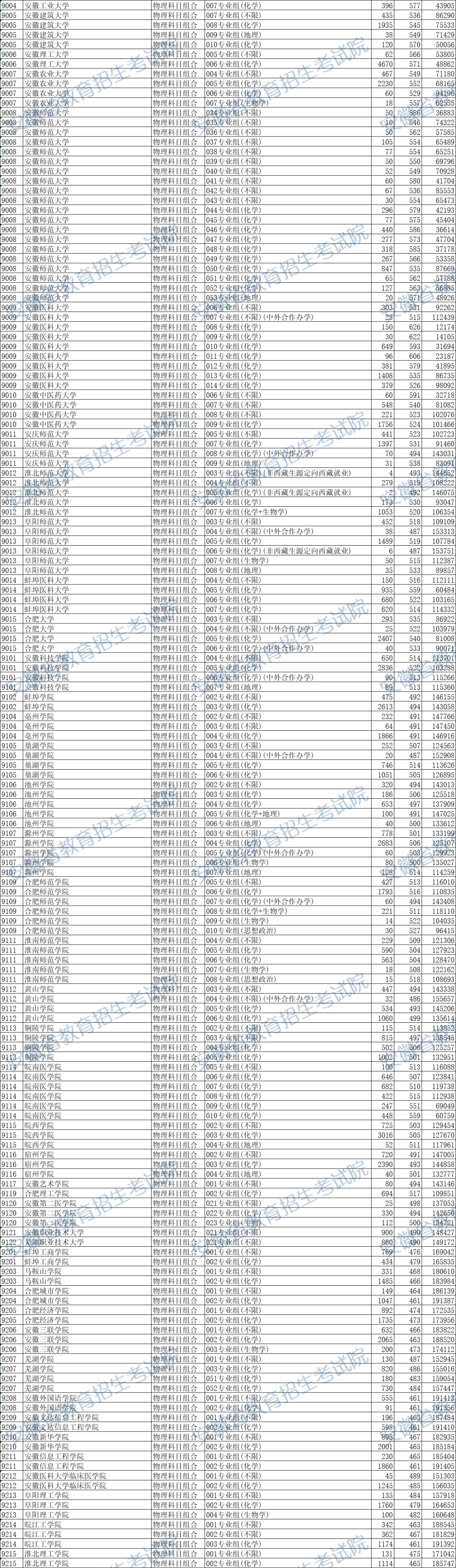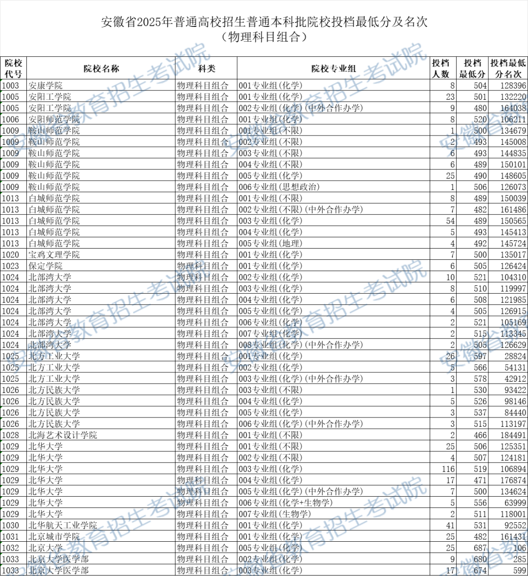 安徽省2025年普通高校招生普通本科批院校投档最低分及名次(物理科目组合)