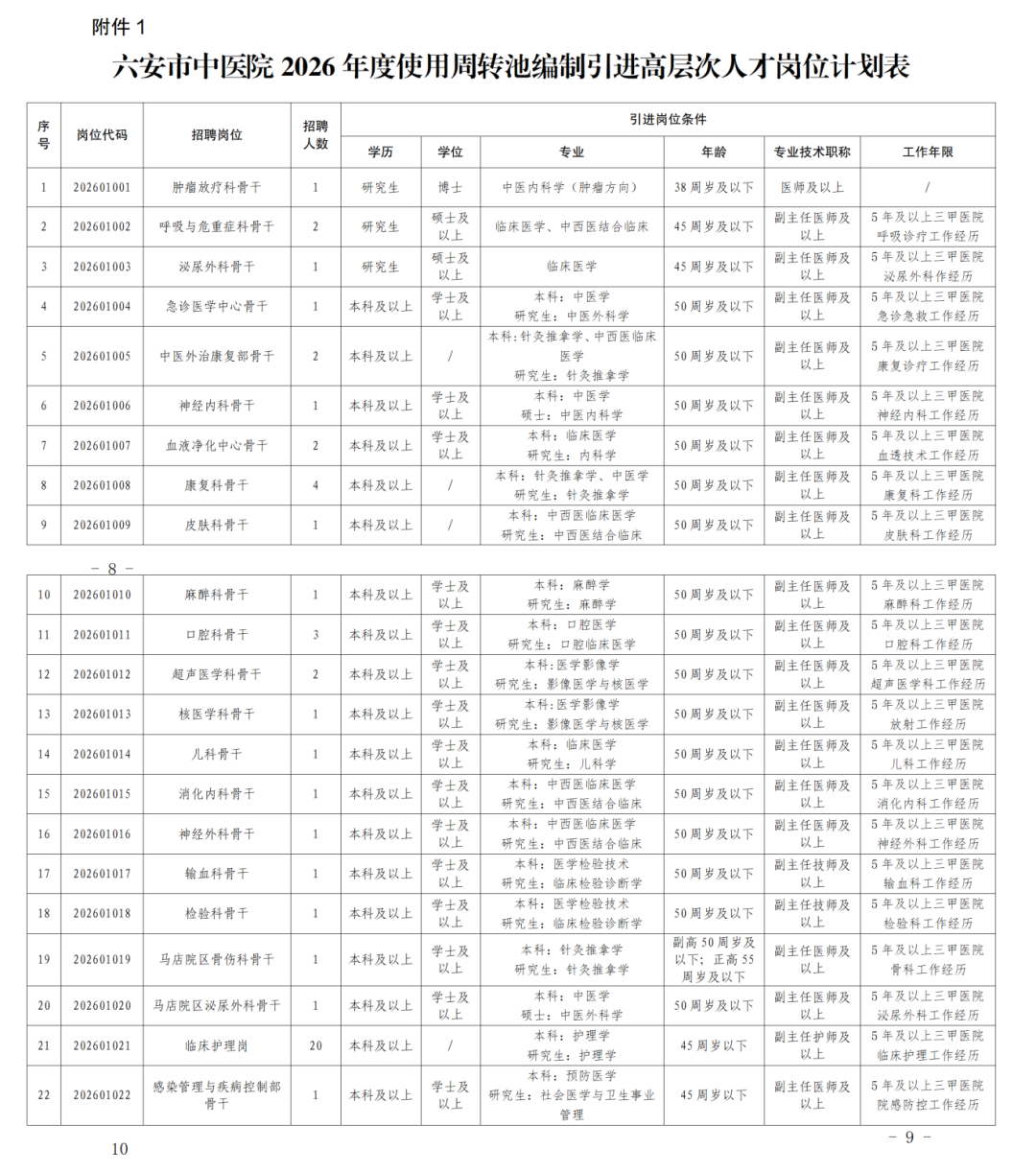 六安市中医院2026年度使用周转池编制引进高层次人才公告