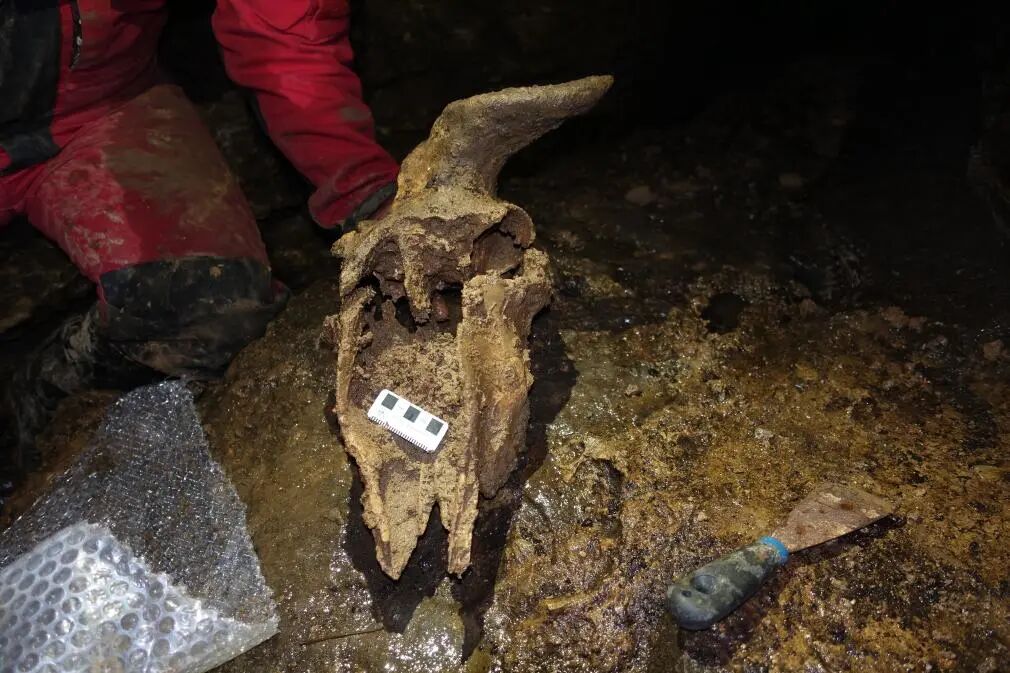 据了解,在2025年10月进行的贵州绥阳双河洞第24次国际洞穴科考期间,科考人员又新发现2具较为完整的羚牛个体化石,至此该洞穴内发现的羚牛化石总个体数已达4具。