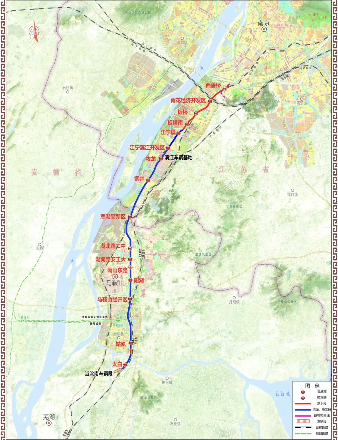 作为南京都市圈交通一体化示范工程,宁马线项目于2021年分别在马鞍山和南京两地开工建设,线路起自南京西善桥站,终至马鞍山太白站,全长约54.23公里,设站16座,设计最高运行速度每小时120公里。